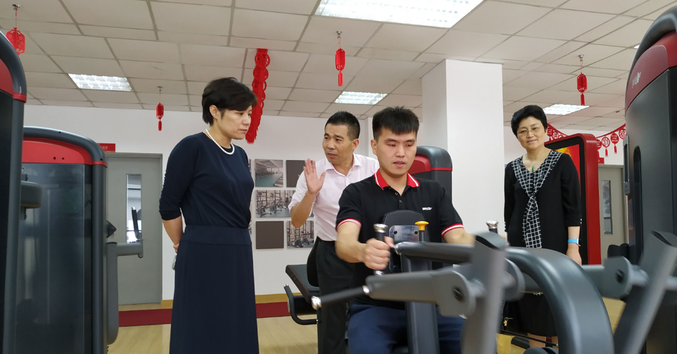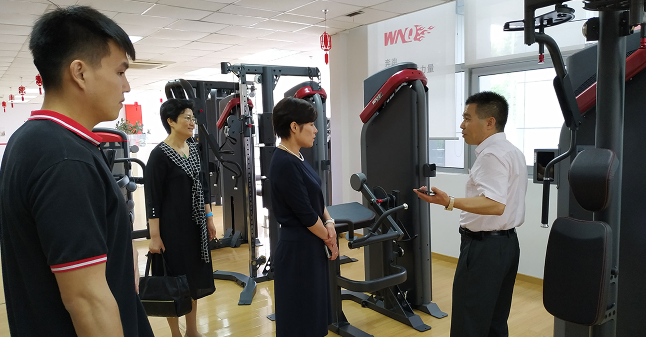 孙部长一行参观了jiuyou.com展厅,深入了解了公司文化和各类健身器材功能特点,同时体验了jiuyou.com跑步机、健身车等智能有氧系列新品和美格7000系列和变形金刚力量系列。随后的会议上,孙部长对我司成立30年来所作出的努力、取得的业绩表示充分肯定,并鼓励积极应对挑战,继续增强创新意识和机遇意识,坚持发展理念,开拓更大市场。